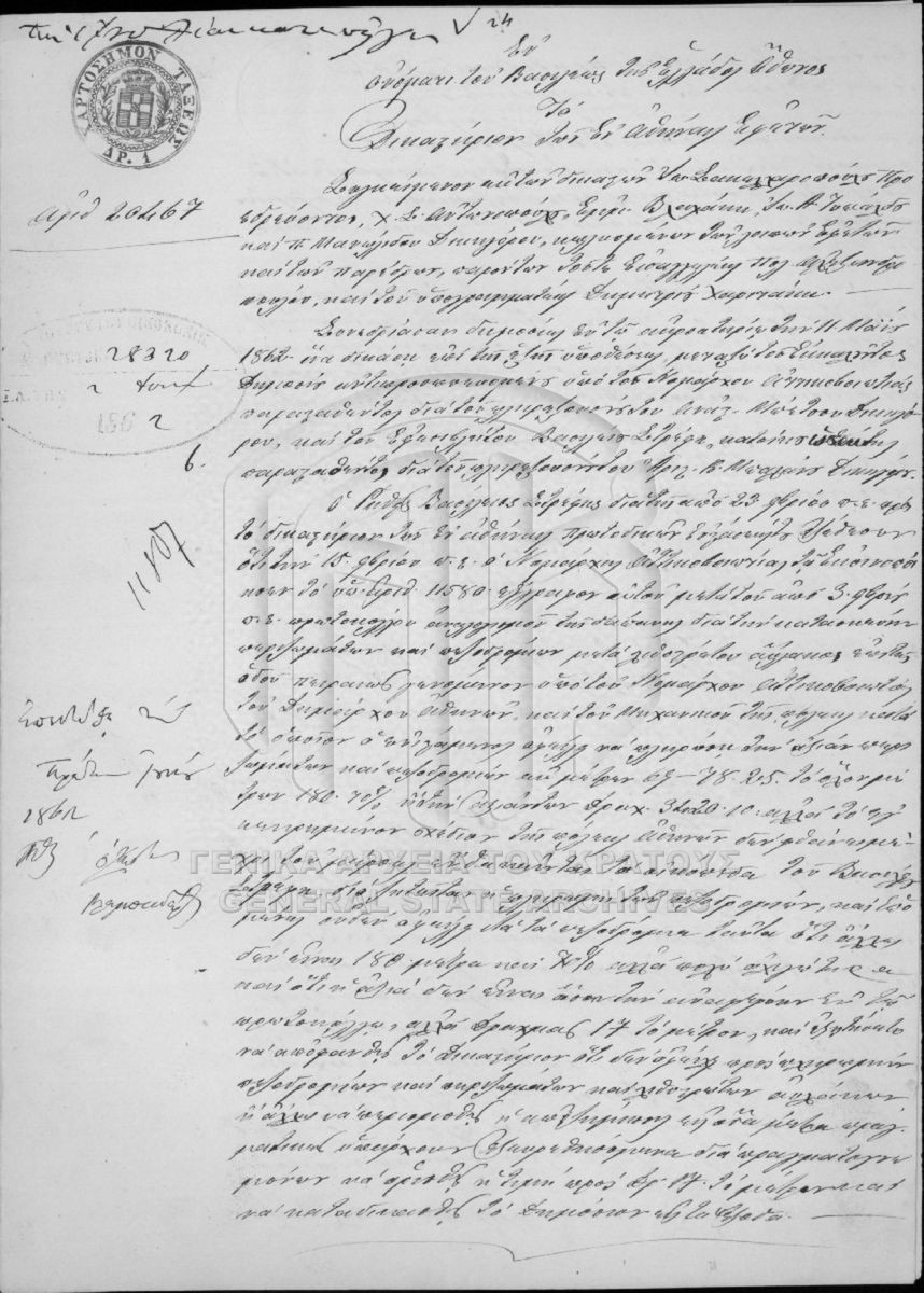 Περιέχει έγγραφα και σχέδια της πόλεως Αθηνών, Πειραιώς, Αττικοβοιωτίας, Εύβοιας, Αιτωλίας και Ακαρνανίας, Φθιωτιδοφωκίδος, Αργολιδοκοριν...