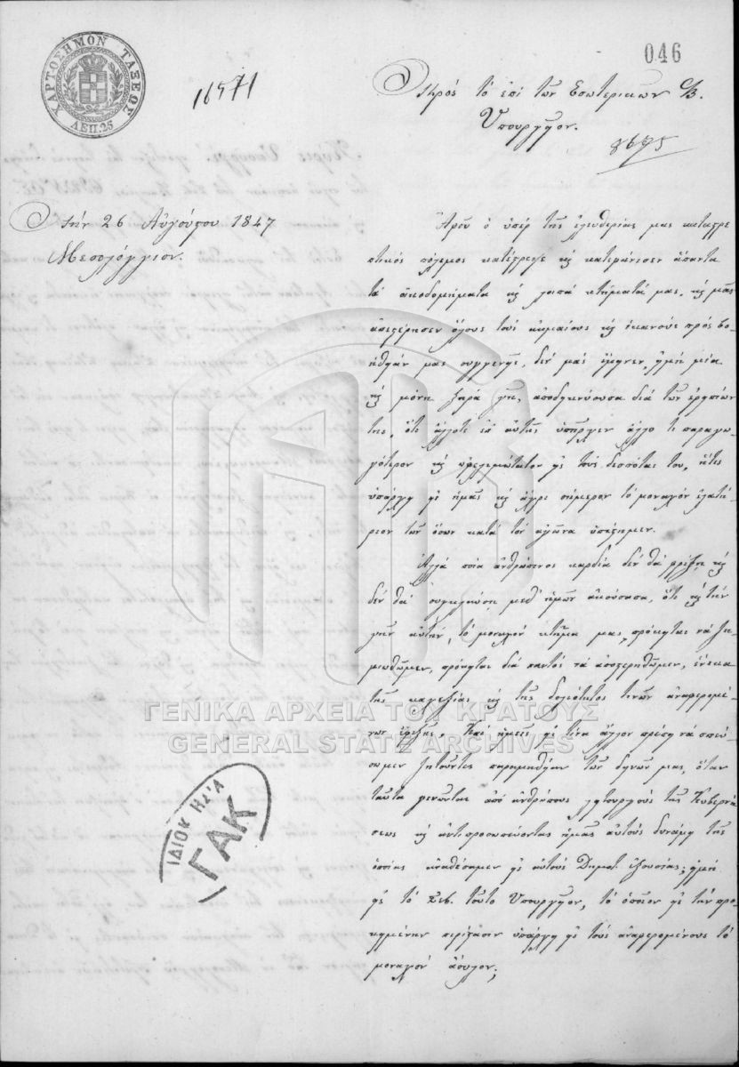 Περιέχει έγγραφα και σχέδια της πόλεως Αθηνών, Πειραιώς, Αττικοβοιωτίας, Εύβοιας, Αιτωλίας και Ακαρνανίας, Φθιωτιδοφωκίδος, Αργολιδοκοριν...