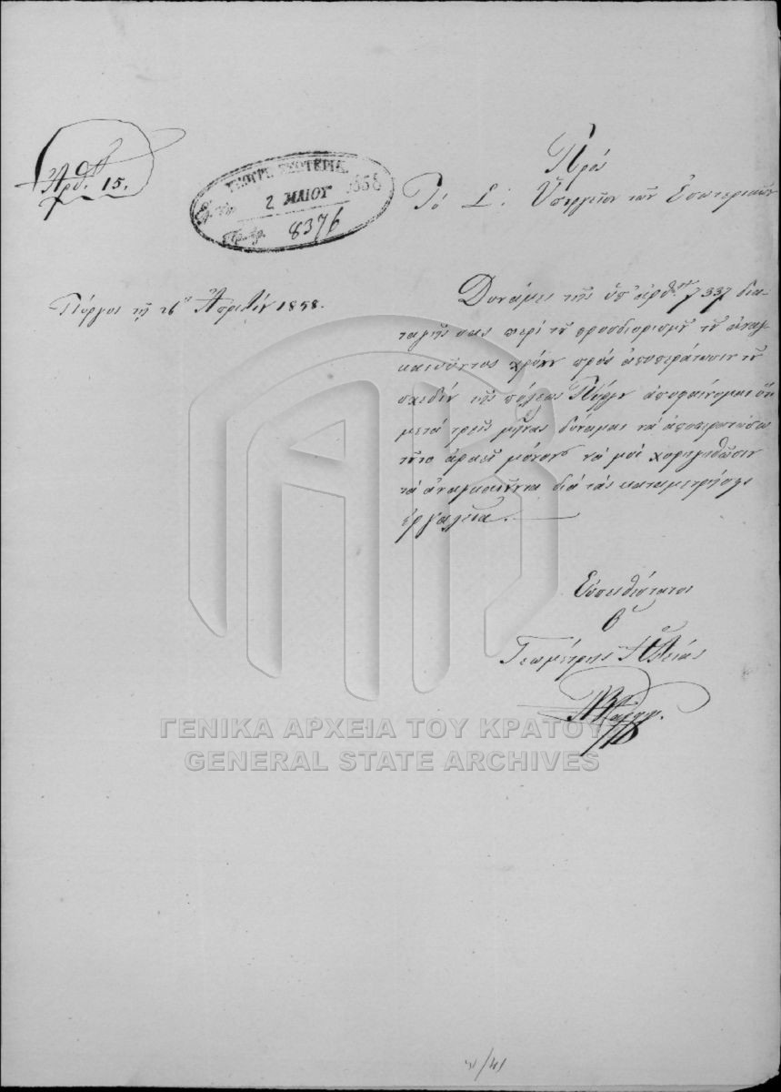 Περιέχει έγγραφα και σχέδια της πόλεως Αθηνών, Πειραιώς, Αττικοβοιωτίας, Εύβοιας, Αιτωλίας και Ακαρνανίας, Φθιωτιδοφωκίδος, Αργολιδοκοριν...