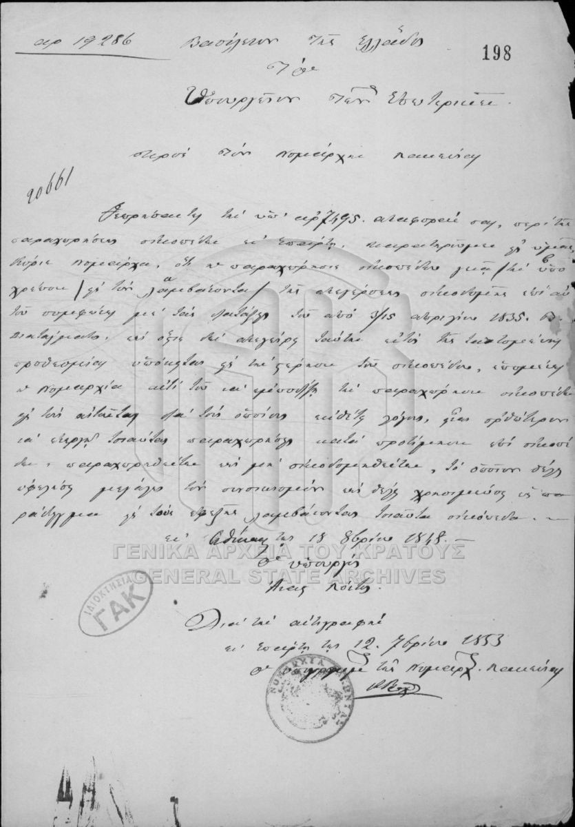 Περιέχει έγγραφα και σχέδια της πόλεως Αθηνών, Πειραιώς, Αττικοβοιωτίας, Εύβοιας, Αιτωλίας και Ακαρνανίας, Φθιωτιδοφωκίδος, Αργολιδοκοριν...