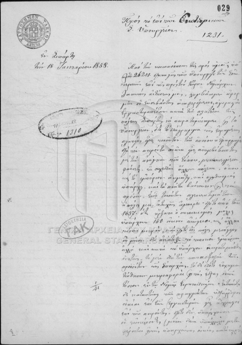 Περιέχει έγγραφα και σχέδια της πόλεως Αθηνών, Πειραιώς, Αττικοβοιωτίας, Εύβοιας, Αιτωλίας και Ακαρνανίας, Φθιωτιδοφωκίδος, Αργολιδοκοριν...