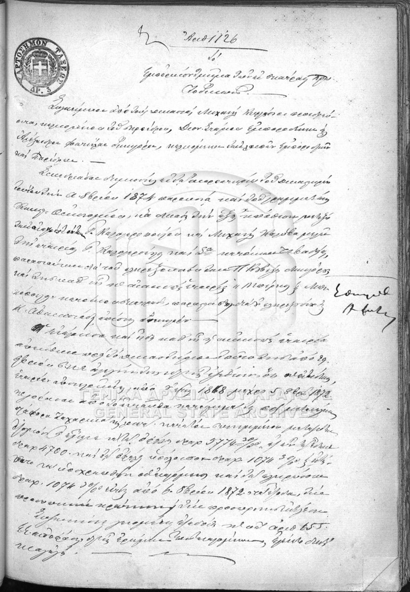 [Fichier] GRGSA-ACH_JUS027.01.F000083 Fichier #083 [1874] Αποφάσεις 1101 - 1394. |
