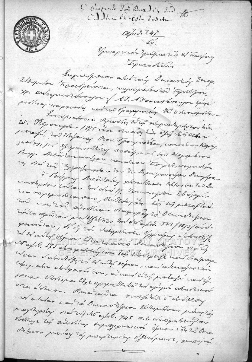 [Φάκελος] GRGSA-ACH_JUS027.01.F000085 Φάκελος #085 [1875] Αποφάσεις 241 - 530. |