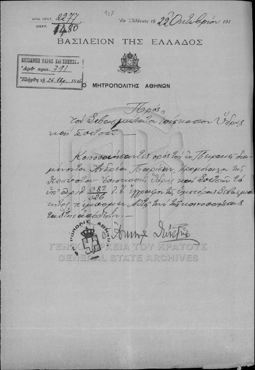 Contents: Αλληλογραφία - οικονομικά έγγραφα Ι.Μ. Ζωοδόχου Πηγής - Καλαβρία - Πόρος. Οικονομικά έγγραφα Ι.Μ. Ζωοδόχου Πηγής Καλαβρί...