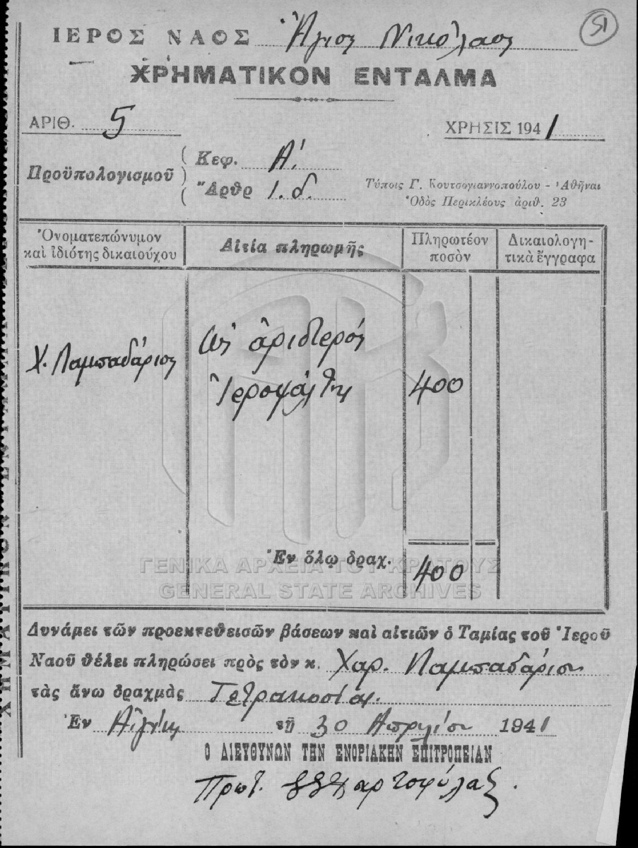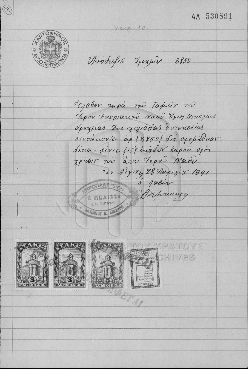 [Fonds] GRGSA-YDR_REL000 Ι.Μ. ΥΔΡΑΣ, ΣΠΕΤΣΩΝ, ΑΙΓΙΝΗΣ [1854 - 1971] Contents: Αλληλογραφία - οικονομικά έγγραφα Ι.Μ. Ζωοδόχου Πηγής - Καλαβρία - Πόρος. Οικονομικά έγγραφα Ι.Μ. Ζωοδόχου Πηγής Καλαβρί... |