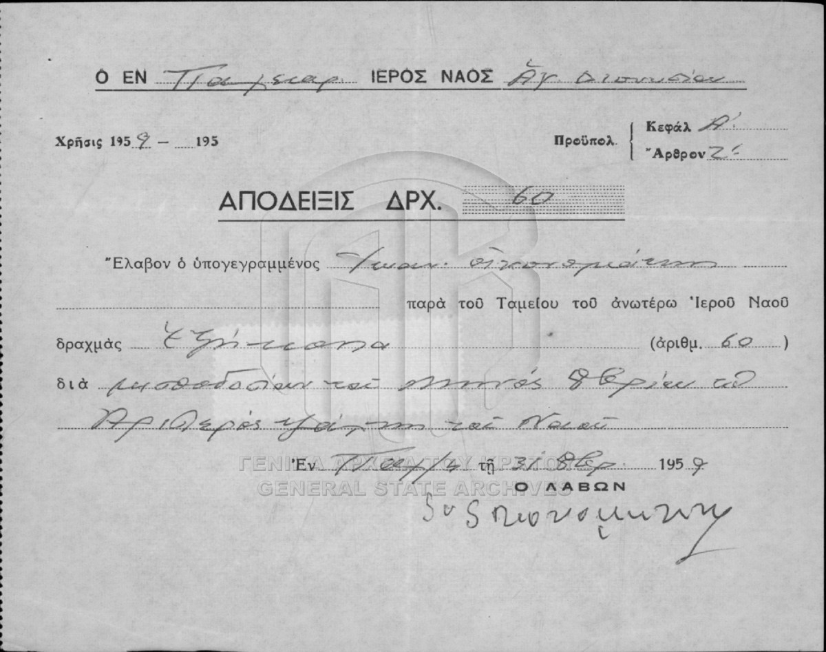 Contents: Αλληλογραφία - οικονομικά έγγραφα Ι.Μ. Ζωοδόχου Πηγής - Καλαβρία - Πόρος. Οικονομικά έγγραφα Ι.Μ. Ζωοδόχου Πηγής Καλαβρί...