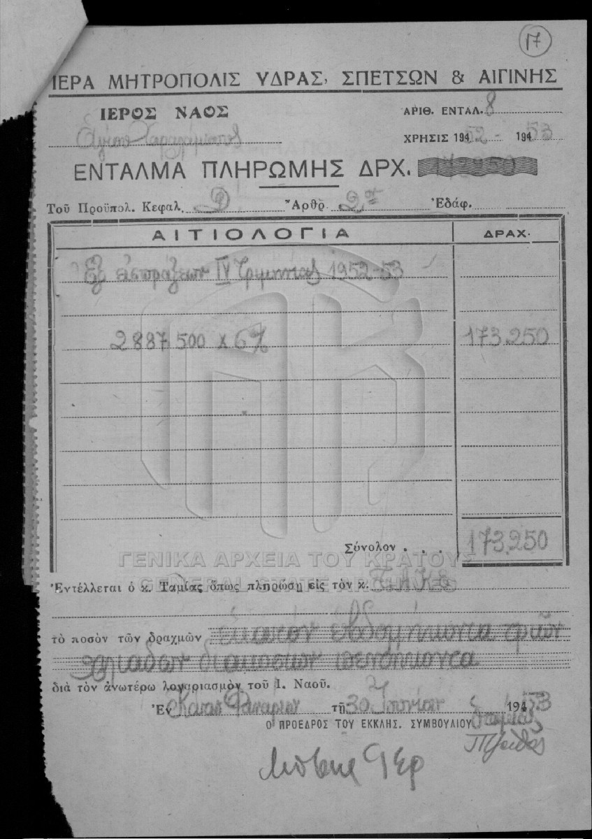 Περιεχόμενα: Αλληλογραφία - οικονομικά έγγραφα Ι.Μ. Ζωοδόχου Πηγής - Καλαβρία - Πόρος. Οικονομικά έγγραφα Ι.Μ. Ζωοδόχου Πηγής Καλαβρί...