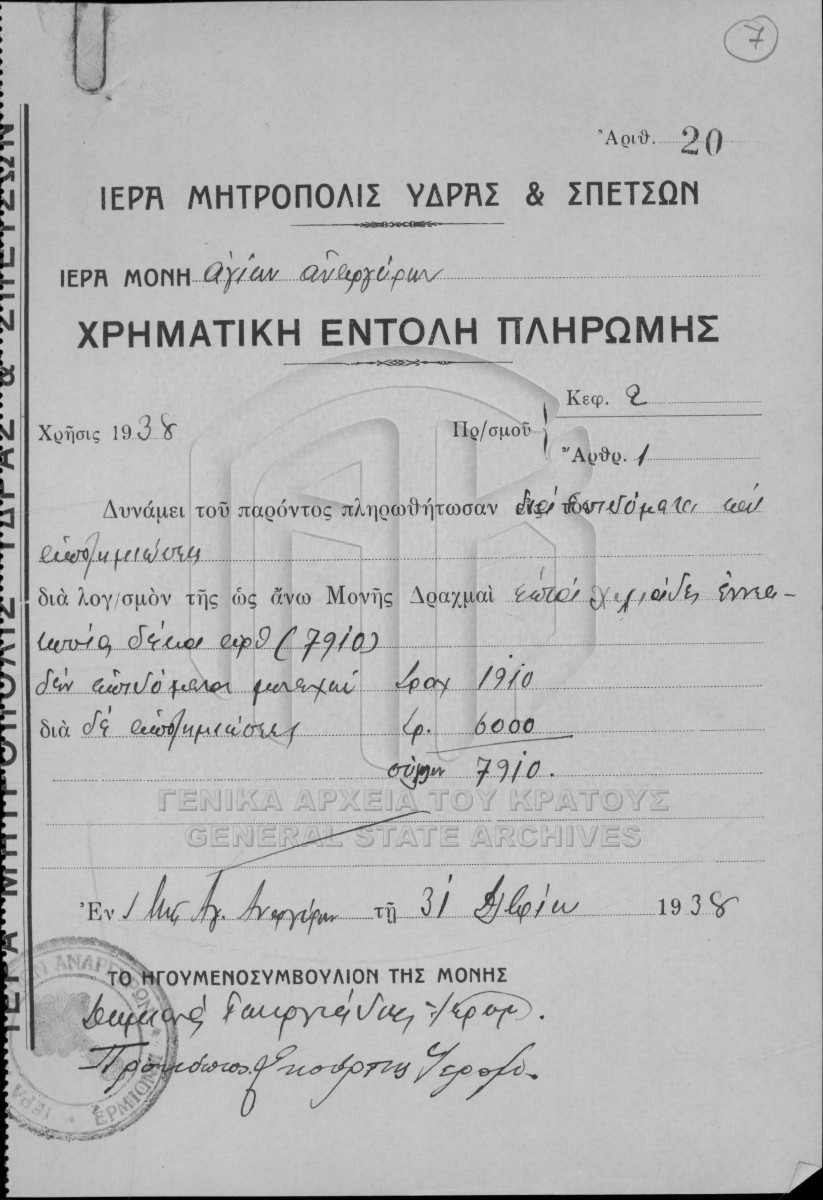 Πρακτικά Ι.Μ. Αγ. Αναργύρων Ερμιόνης.