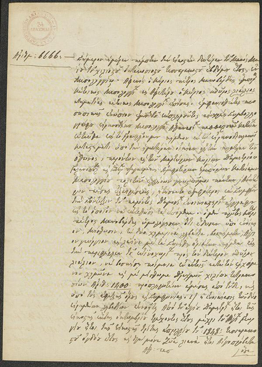 [Item] GRGSA-AIT_JUS003.00.F000012.SF0002.IT006666 Item #6666 [1840 - 1855] Ο πρώτος ενοικιάζει στον δεύτερο δύο χειμερινά βοσκήματα στην περιφέρεια Ευηνοχωρίου, για τον ερχόμενο χειμώνα, με ενοίκιο 1.400 δρχ. |