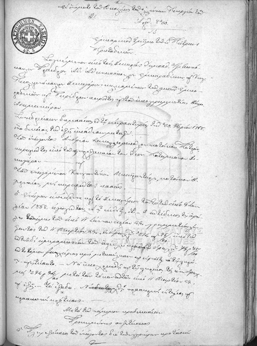File #065 - PATRAS COURT OF FIRST INSTANCE ARCHIVE. COMMERCIAL TRIBUNAL  [1868]