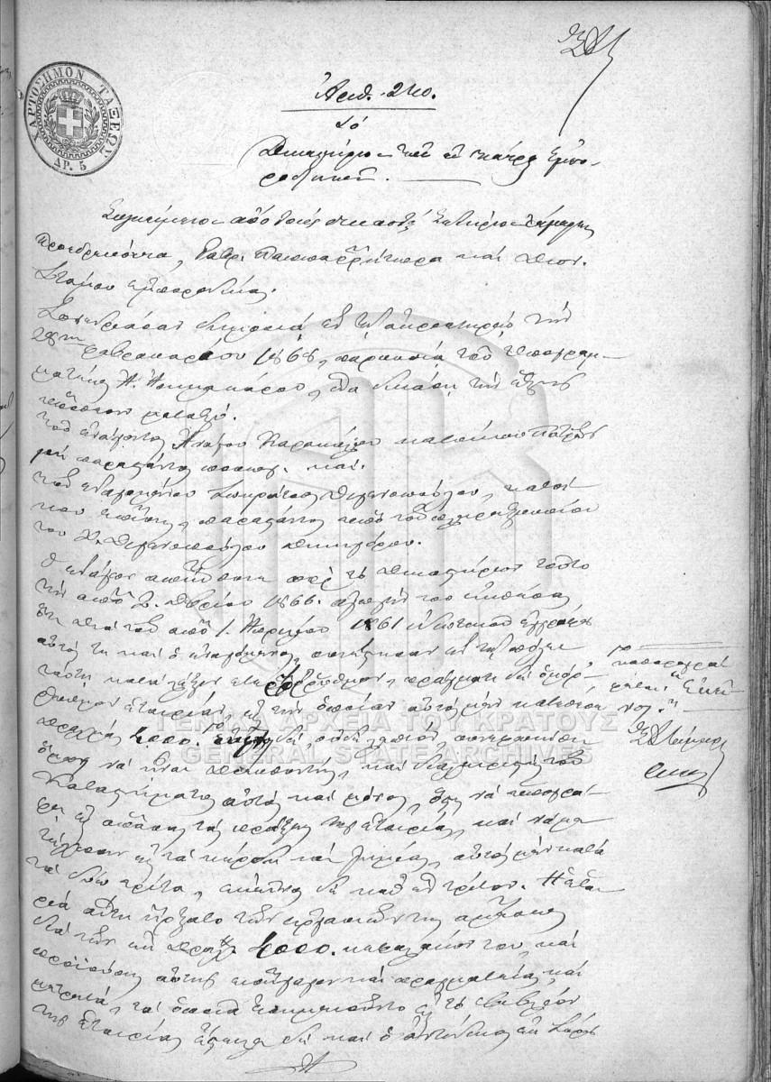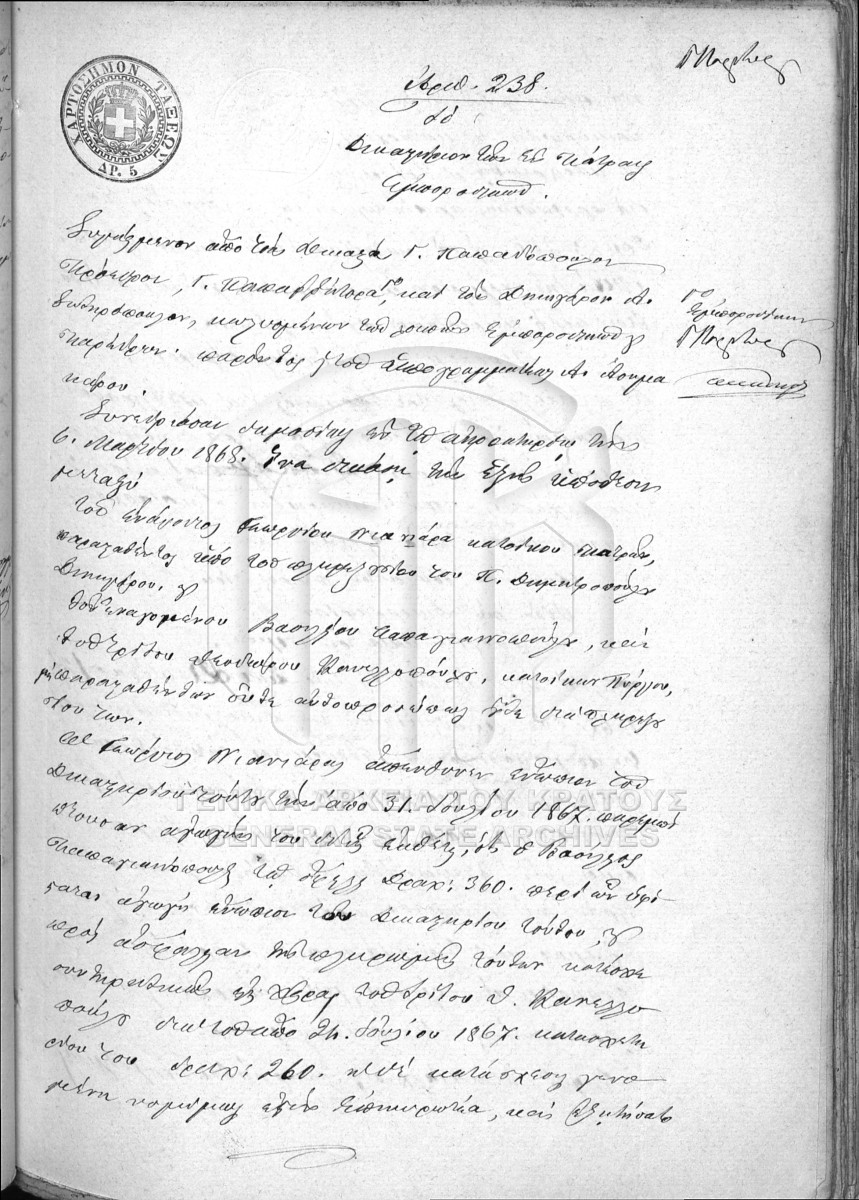 File #066 - PATRAS COURT OF FIRST INSTANCE ARCHIVE. COMMERCIAL TRIBUNAL  [1868]